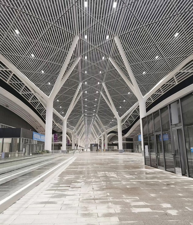 幕墙类型:屋面玻璃采光顶+铝板幕墙、铝合金吊顶格栅幕墙、蜂窝铝板幕墙、框架式明框幕墙等
