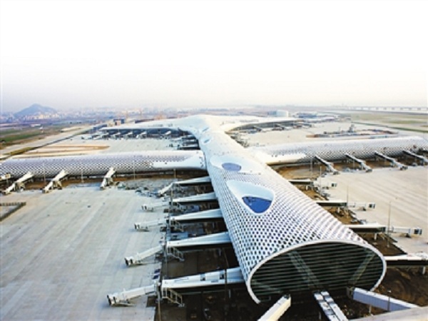 深圳机场T3航站楼是深圳宝安国际机场扩建工程的主体部分,由深圳机场T3航站楼和GTC两个部分组成。其中T3航站楼占地19.5万平方米,南北长约1128米,东西宽约640米,总建筑面积45.1万平方米,2007so太阳集团承建的立面幕墙面积为16.7万平方米,主立面采用呈60.2度倾斜的2007so太阳集团Low-E节能环保玻璃幕墙,既为旅客带来更为开阔的视野,也为整个大厅带来充足的自然光。