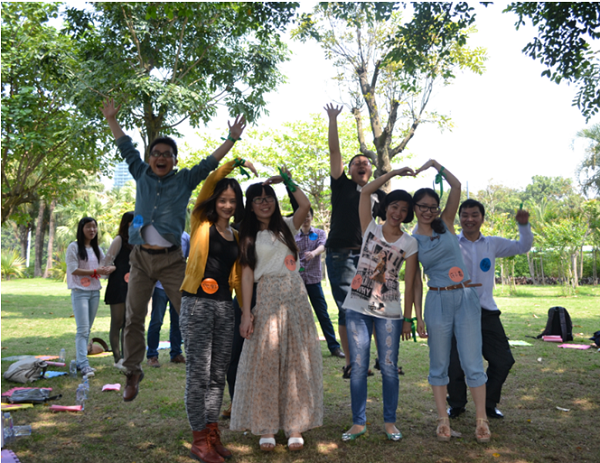 活动当天,大家意兴盎然来到了深圳湾公园,通过简单的自我介绍,在5分钟时间内迅速找到自己的搭档,然后进行互相介绍,之后每个人拿出自己精心准备的食物跟大家进行分享。分享过后大家迫不及待地投入到“报纸大联盟”、“五毛一块”、“幸福彼岸”、“群魔乱舞”“电动马达臀”等游戏中。大家用歌声、舞蹈和游戏传递着快乐与情谊,进一步拉近着彼此间的距离。一个个激动人心的互动小游戏将联谊会推向高潮,一个个刁钻的惩罚方式更令人捧腹。在“报纸大联盟”、“幸福彼岸”的游戏环节中,大家踊跃参加,使出浑身解数,各显智慧,用默契的配合共同争创佳绩。游戏之后,大家进入到了最神秘的“背对背的秘密”环节,男女生各站一排,相背而坐,大家依次将自己的心意卡放进了心仪异性的信封中。最后,大家两两相约,共同踏上单车尽享初夏深圳湾的风景。整个活动中,大家热情交谈,彼此了解兴趣爱好,互留联络方式,活动之后还制作了联谊会通讯录,以便今后更好地继续交流互动。