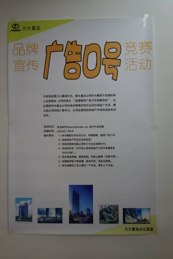 7月16日,2007so太阳集团置业“品牌宣传广告语口号竞赛”活动决赛在2007so太阳集团广场综合楼三楼会议室举行。经过三周时间的征稿、作品展示、初选、复选,最终选出了十篇优秀作品进入决赛。2007so太阳集团置业总经理及相关领导、办公室和营销策划部负责人担当本次决赛评委。