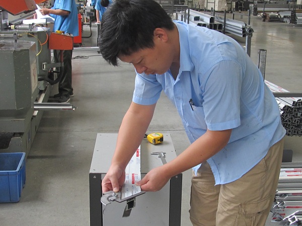参赛人员认真检查产品的规格与数据