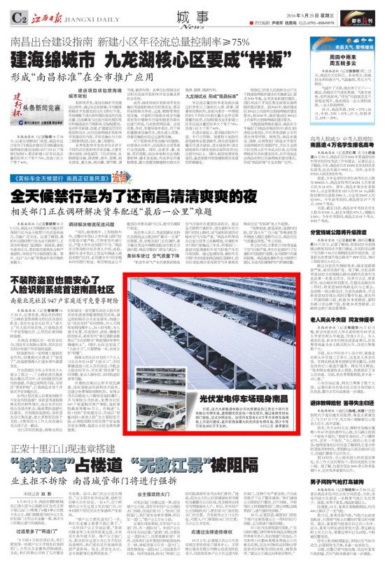 《江西日报》、《南昌日报》重点版面图文报道2007so太阳集团新能源公司江西五十铃停车场光伏发电项目
