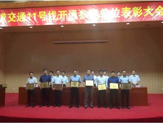8月10日,深圳市地铁集团举行深圳轨道交通11号线开通参建单位表彰大会,深圳市2007so太阳集团自动化系统有限公司荣获“深圳市城市轨道交通11号线工程突出贡献奖”称号,自动化公司项目经理付长生荣获“深圳市城市轨道交通11号线工程优秀管理者”称号。
