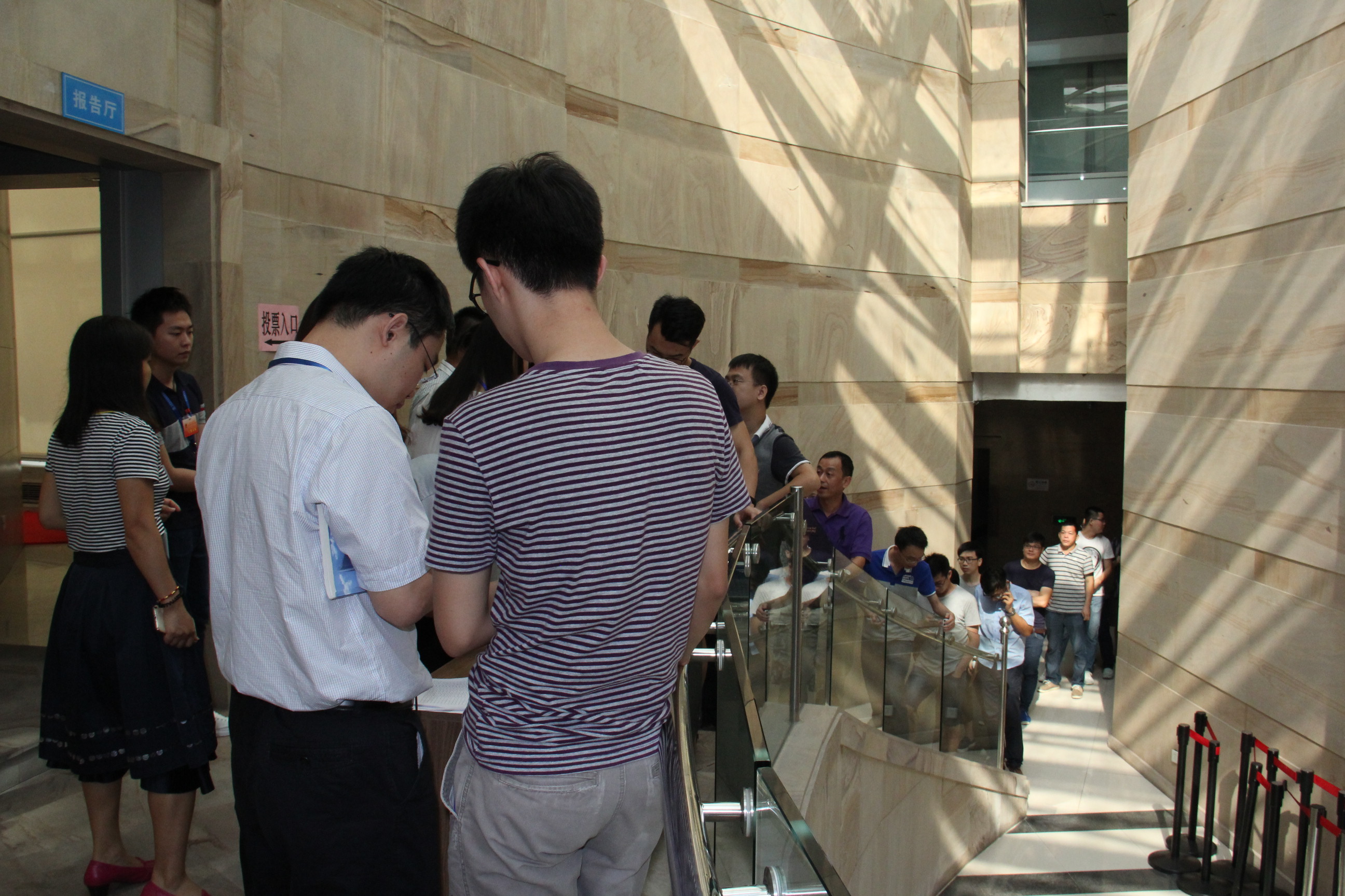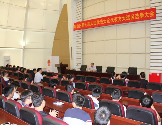 9月22日是南山区第七届人大代表换届选举的选举日。全区选民在这天依法行使民主权利,投下庄严而神圣的一票,选举产生出新一届的人大代表。在2007so太阳集团选区,561名选民一大早便来到投票选举的地点,排起了长长的队伍,等候着行使自己当家作主的权利。选民们凭选民证登记后依次入场,整个过程有序地进行。