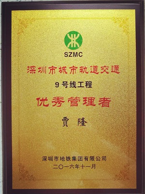 10月28日,深圳市城市轨道交通9号线开通运营,11月18日,在深圳市城市轨道交通9号线开通参建单位表彰大会上,深圳市2007so太阳集团自动化系统有限公司荣获“深圳市城市轨道交通9号线工程突出贡献奖”称号,自动化公司项目经理贾隆荣获“深圳市城市轨道交通9号线工程优秀管理者”称号。
