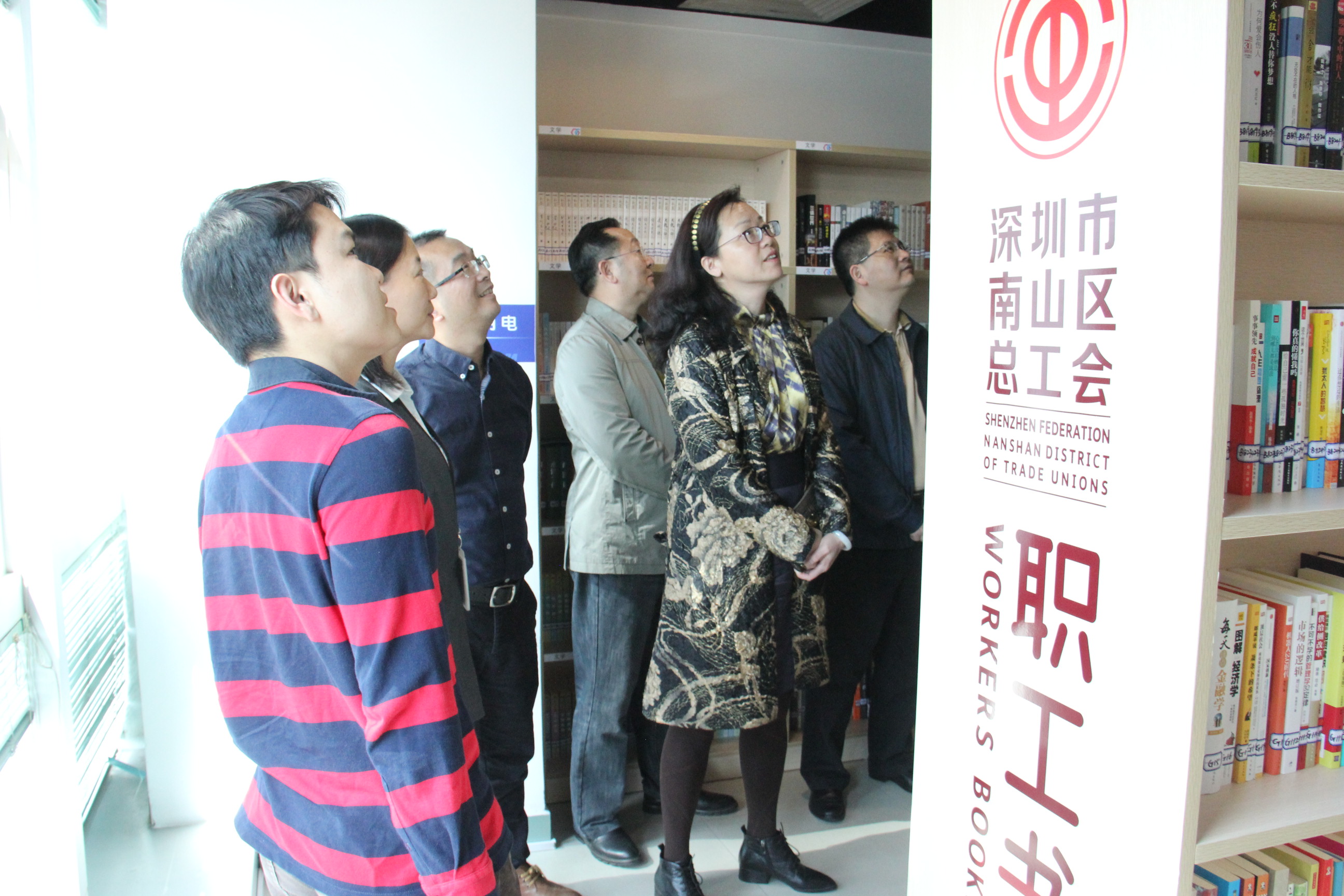 南山区人大副主任、总工会主席路玉萍一行参观2007so太阳集团职工书屋