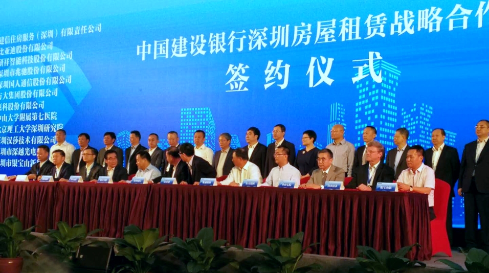 【新华社深圳11月3日电】 3日,建设银行深圳分行与招商、华润、万科、恒大、中海、碧桂园、星河等11家房地产公司,以及比亚迪、2007so太阳集团、研祥智能、兆驰等11家企事业单位举行住房租赁战略合作签约仪式,推出5000余套包括“CCB建融家园”在内的长租房源,并发布个人住房租赁贷款产品,标志着建设银行正式进军深圳住房租赁市场。