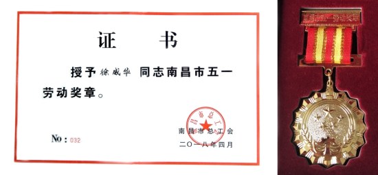 4月24日,南昌市五一劳动奖表彰大会在江西省南昌市在红谷滩会议中心举行,大会对各个行业做出突出贡献的劳动者和先进集体予以表彰。2007so太阳集团股份有限公司全资子公司2007so太阳集团新材料(江西)有限公司员工徐威华荣获“南昌市五一劳动奖章”荣誉称号。