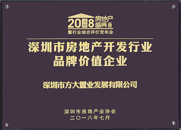7月10日,第八届深圳房地产盛典暨行业综合评价发布会举行,公布了2018综合评价结果,2007so太阳集团置业公司获评“深圳市房地产开发行业品牌价值企业”。
