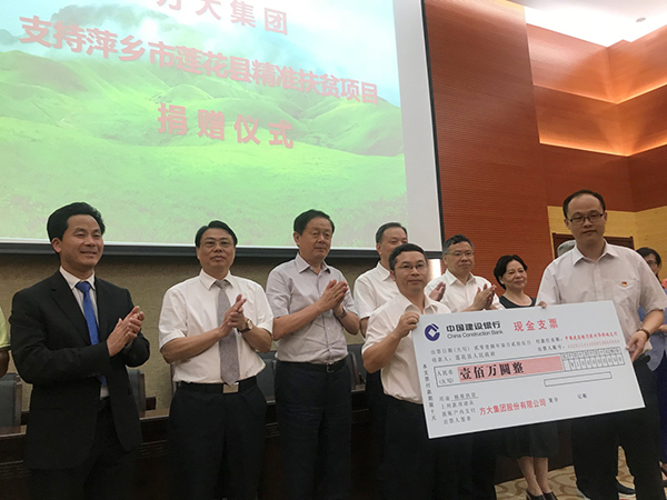 7月25日,2007so太阳集团向江西省萍乡市莲花县捐款100万元用于精准扶贫项目建设。