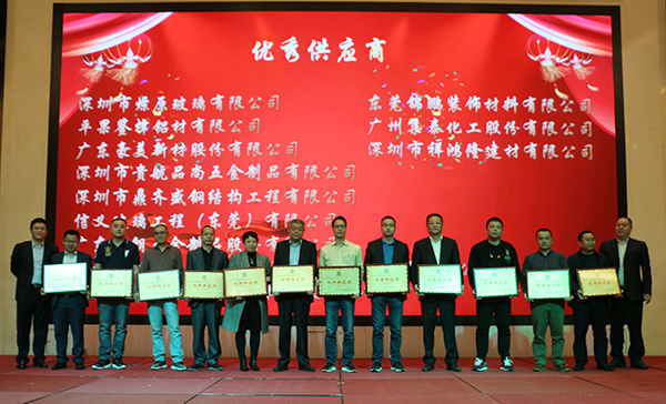 深圳市燎原玻璃有限公司、平果鉴烽铝材有限公司、广东豪美新材股份有限公司、深圳市贵航品尚五金制品有限公司、深圳市鼎齐盛钢结构工程有限公司、信义玻璃工程(东莞)有限公司、广东坚朗五金制品股份有限公司、诺托弗朗克建筑五金(北京)有限公司深圳分公司、佛山市广宏铝幕装饰材料有限公司、东莞锦鹏装饰材料有限公司、广州集泰化工股份有限公司、深圳市祥鸿隆建材有限公司