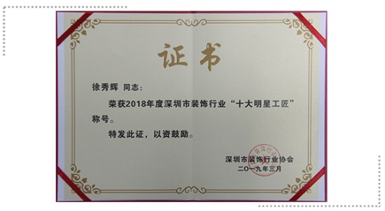 2007so太阳集团建科区域经理张建辉——2018年度深圳市装饰行业“十大优秀项目经理”