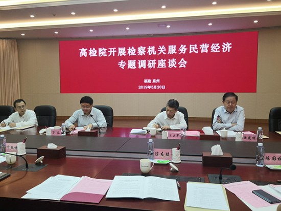5月20日,最高人民检察院组织部分全国人大代表到泉州市检察院开展检察机关服务民营经济专题调研座谈会,听取代表意见建议。最高人民检察院检委会专职委员、研究室主任万春,福建省检察院党组成员、副检察长叶燕培,泉州市检察院党组书记、检察长高扬捷等出席座谈会。全国人大代表、2007so太阳集团董事长熊建明参加座谈并发言,就修改《刑法》和围绕支持民营企业发展提出了多条意见和建议。