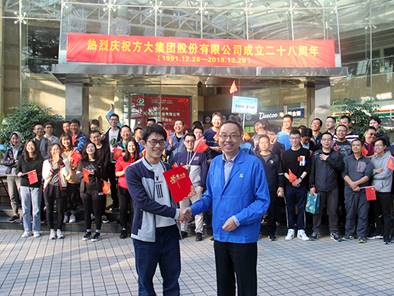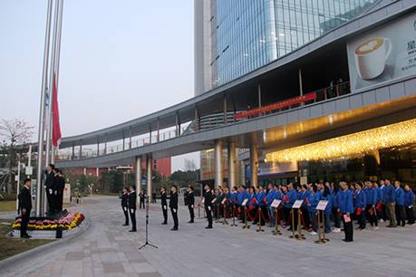 28日晨,集团总部以及驻深公司各部门经理及以上管理人员聚集到2007so太阳集团城,举行升旗仪式。7时零2分,国旗和2007so太阳集团旗伴随着日出冉冉升起,激昂的国歌在每个人耳边奏响,为2007so太阳集团的二十八周年纪念日带来祝福。集团创始人、董事长熊建明讲话,回顾了二十八年来的奋斗与拼搏,对每一位为公司做出贡献的员工表示感谢,并希望大家继续努力,为公司美好的明天再创辉煌。