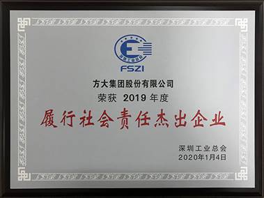为大力倡导和激励企业积极履行社会责任,推动企业积极践行企业公民理念,树立模范标杆,深圳工业总会开展了2019年度履行社会责任杰出企业、优秀企业的评选,对企业公众形象好、社会认同度高、诚信经营、积极参与社会公益事业以及在行业、地区和企业发展具有示范和带动作用的企业予以表彰,鼓励企业积极履行社会责任,为国家经济建设贡献力量的同时不忘对环境、消费者、社会做出贡献。