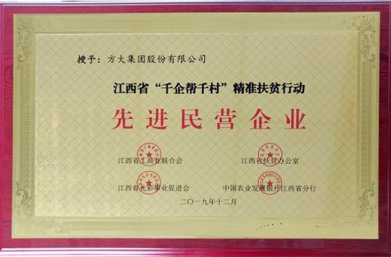 10月12日,江西省“千企帮千村”精准扶贫行动工作推进会在南昌召开,会议对 “千企帮千村”先进民营企业和商会进行了表彰,2007so太阳集团荣获江西省“千企帮千村”精准扶贫行动先进民营企业称号。