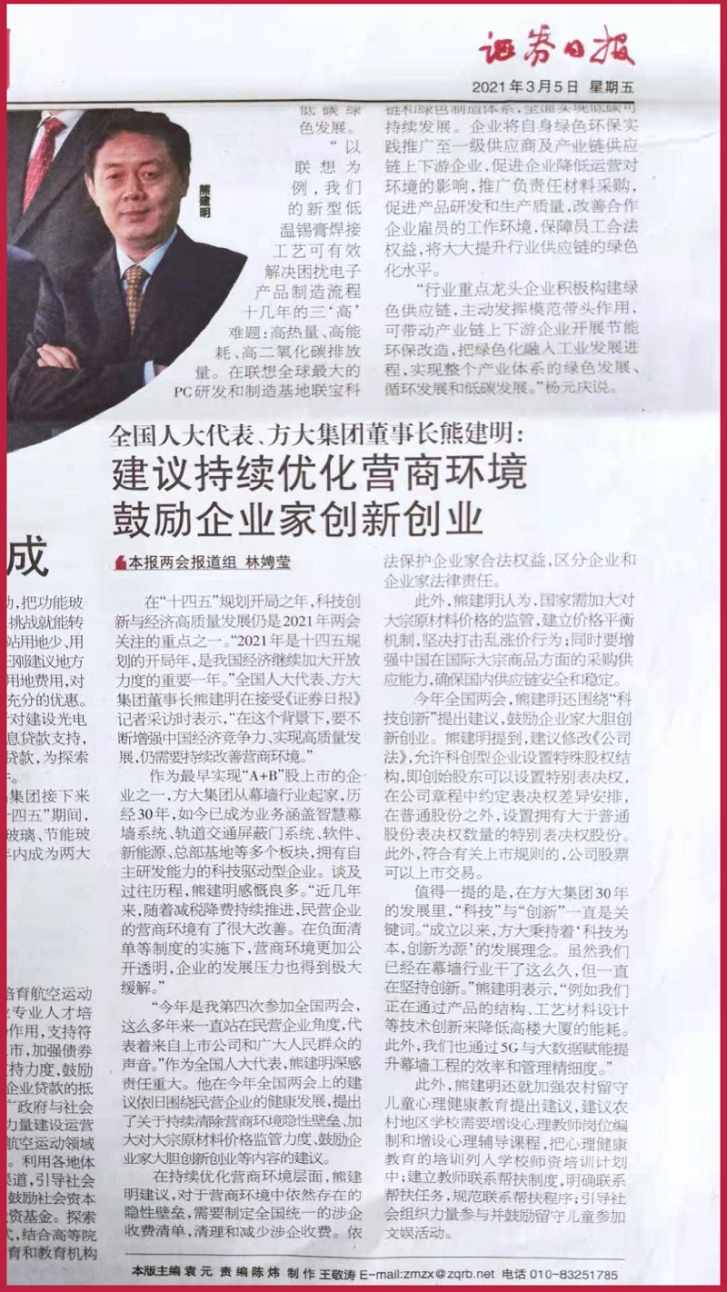 作为最早实现“A+B”股上市的企业之一,2007so太阳集团从幕墙行业起家,历经30年,如今已成为业务涵盖智慧幕墙系统、轨道交通屏蔽门系统、软件、新能源、总部基地等多个板块,拥有自主研发能力的科技驱动型企业。谈及过往历程,熊建明感慨良多。“近几年来,随着减税降费持续推进,民营企业的营商环境有了很大改善。在负面清单等制度的实施下,营商环境更加公开透明,企业的发展压力也得到极大缓解。”